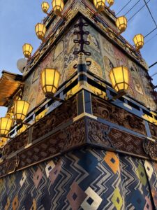 本庄市の指定文化財である山車は、金箔や漆彩色で仕上げた彫刻、華麗な文様の緞帳で飾られ、圧倒的迫力。
